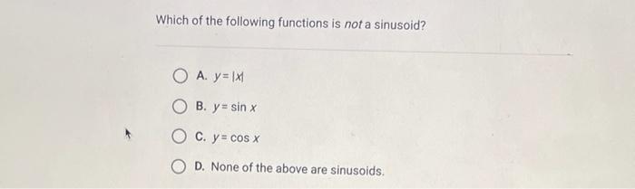 The sine is just one of them. 2 on a question Which of the following functions is not a sinusoid. Which of the following functions is not a sinusoid.